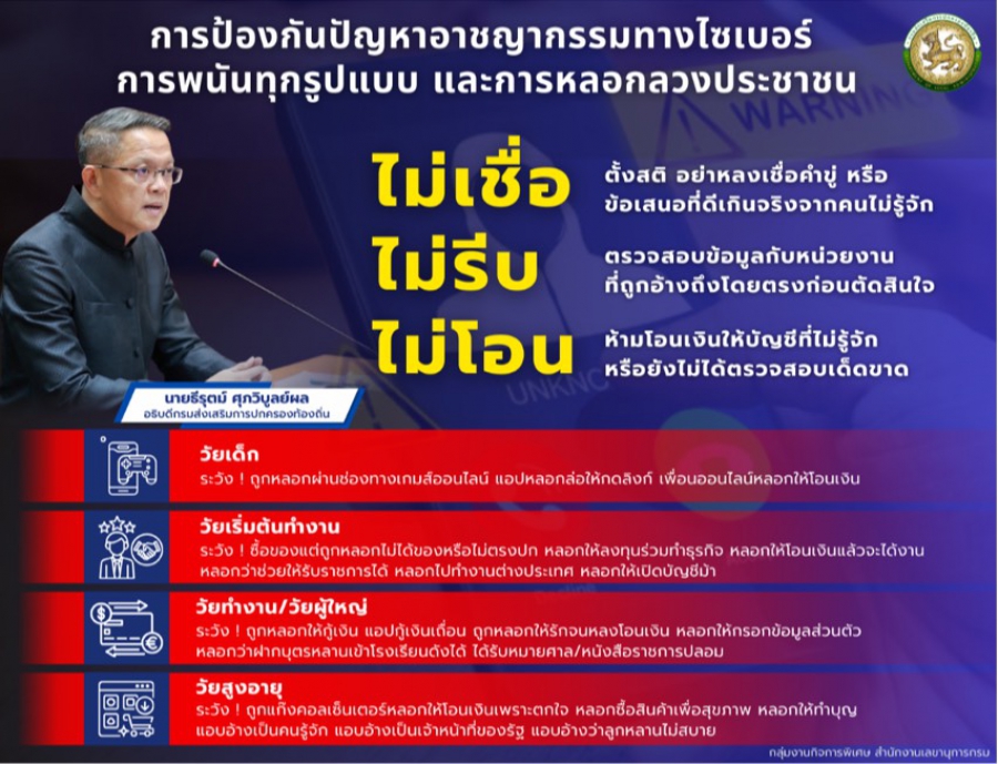 ประชาสัมพันธ์การสร้างความรู้ความเข้าใจเพื่อป้องกันการหลอกลวงทางออนไลน์ (Scammer)